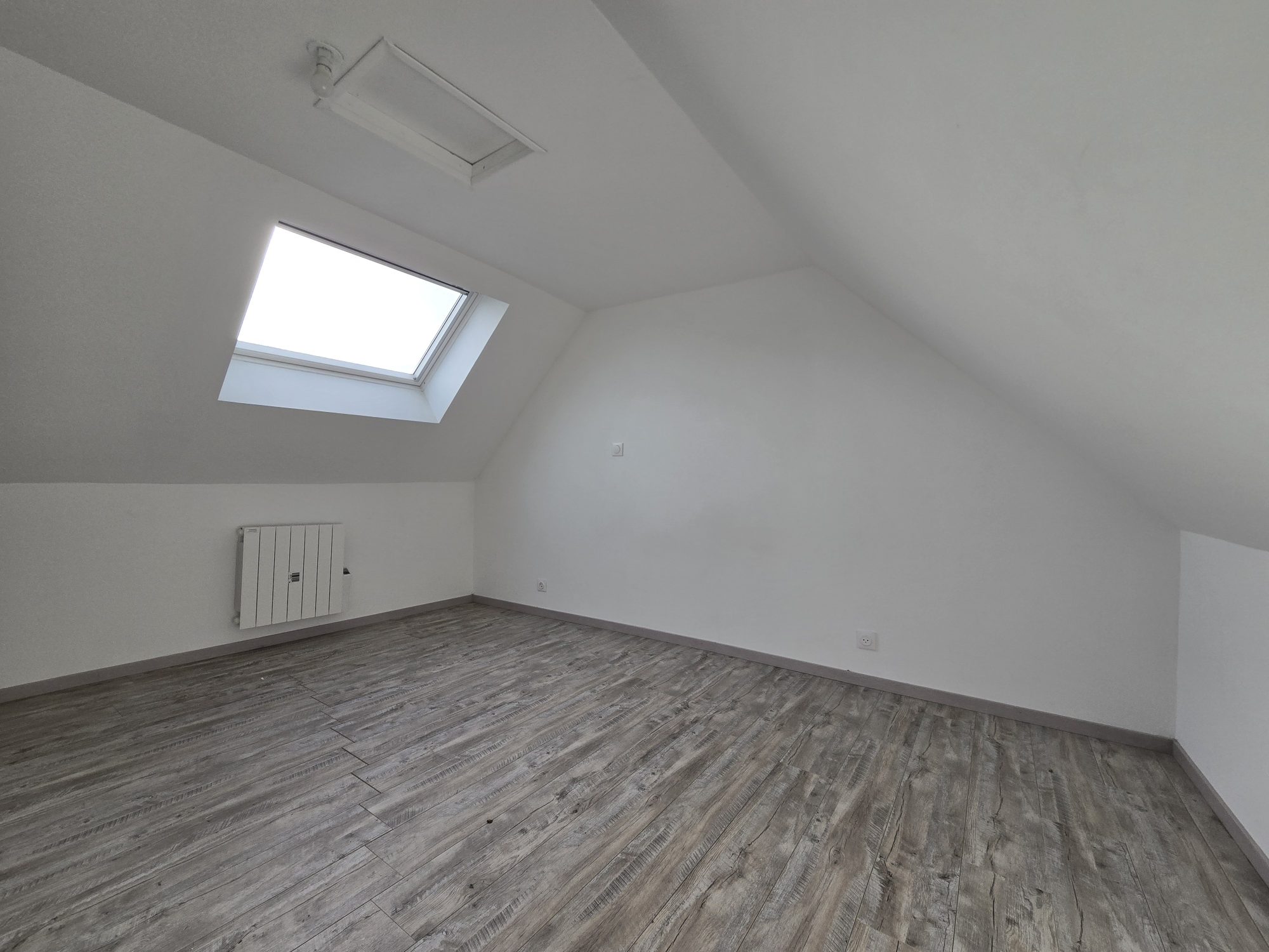 Maison de ville rénovée comprenant en rez-de-chaussée : séjour, cuisine aménagée et équipée, salle de bains avec WC et emplacement machine. Au 1er étage : palier, 2 chambres. Au 2ème étage : une chambre.